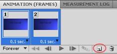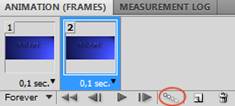 Теперь открываем окно анимации – Window=> Animation. Для первого кадра мы уже работу проделали, убрав блик в нижний угол, теперь создаем второй кадр: