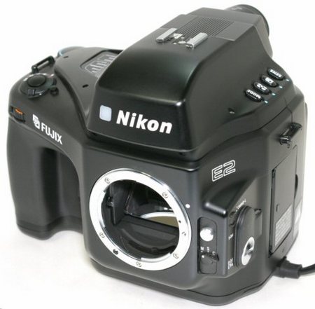 Собственная же цифровая камера была выпущена компанией Nikon в 1995 году. Это была цифровая «зеркалка» профессионального уровня Nikon E2 с 2/3-дюймовой ССD-матрицей, имевшей разрешение 1,3 мегапикселя. По тем временам технические характеристики камеры были на самом высоком уровне, однако модель Nikon E2 была обделена какой-либо большой популярностью. Первой же по-настоящему успешной цифровой зеркальной камерой для Nikon стала модель D1 1999 года, которая имела уже разрешение 2,74 мегапикселя и обеспечивала серийную съемку со скоростью 4,5 кадра в секунду.