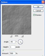 Применяем фильтр «Тиснение» (Filter=> Stylize=> Emboss ) с такими настройками: