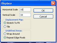 К слою с изображением применяем фильтр «Смещение» (Filter=> Distort=> Displace), и вставляем сохраненную раннее текстуру: