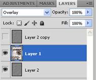 Слой с изображением перемещаем, как показано на картинке ниже и меняем режим наложения на Overlay: