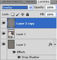 Делаем видимым верхний слой с текстурой, также удаляем ненужные края и ставим режим наложения Overlay: