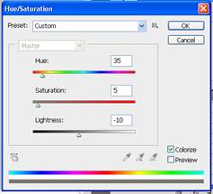 К нижнему слою добавляем Тон/Насыщенность (Image=> Hue/Saturation):