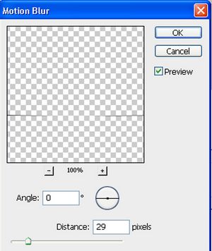 К полосам применяем фильтр «Размытие в движении». Меню Filter=> Blur=> Motion Blur: