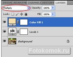 И меняем режим наложения этого же слоя на Multiply:
