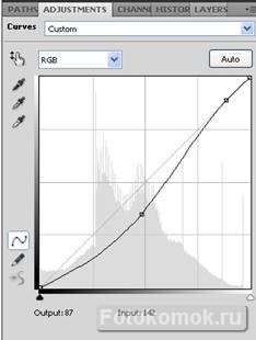 Последним штрихом будет корректирующий слой «Кривые» (Layer=> New Adjustment Layer=> Curves)
