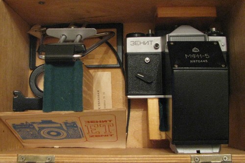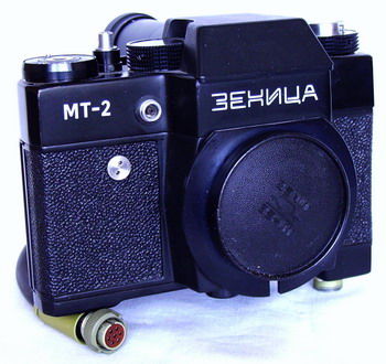 С помощью фотокамеры «Зенит» и съемной насадки МФН-5 можно было получать стереоскопические изображения размером 24 х 16 мм. Другое приспособление – насадка МФН-8 – предназначалась для фотографирования объектов, исследуемых под микроскопом в научных или медицинских целях. Совместно с ней использовалась уже собственная микро фотокамера оригинальной конструкции с пластинкой размером 9 х 12 см. Сама насадка МФН-8 была снабжена центральным затвором с двумя выдержками – «М» и «К». Спуск затвора производился посредством тросика, который был обязательно включен в комплект поставки.