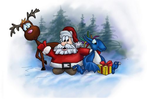 3. Начинаем накладывать светотень. В данном случае изображение планируется цветным. Тон должен накладываться постепенно, цвет смешиваться грамотно. Сначала настраиваем кисть. К примеру, для красного кафтана Деда мороза я настроил кисть следующим образом: цвет RGB 250,0,0; непрозрачность 50%; круглая, с растушевкой, размер меняется в процессе рисования, т. к. задача равномерно закрасить деталь (полутень). 4. Затем, я настроил кисть более яркую по тону и сделал тень, кроме красного были добавлены другие цвета, по законам реалистичного рисования обычной живописной работы. Наложил свет и рефлексы. В отличие от работы красками или цветным графическим материалом в рисовании от руки, на компьютере неправильный мазок можно легко удалить, сделав шаг назад (несколько шагов назад, или вообще вернуться к самому началу) или сразу перекрыть цвет, положив нужный, нет необходимости ждать пока цвет подсохнет. Активно работая непрозрачностью кисти, ее характером, смешивая цвета, можно добиться потрясающих результатов в передаче объемности и живописности рисунка. 5. Уточнение светотени изображения в целом, работа над мелкими деталями. Обводка рисунка черной кистью. Меняя размер кисти, легко заполняются большие поверхности рисунка и уточняются мелкие. Здесь важен тот факт, что инструмент всего один, а размер кончика можно варьировать от 1-2500 пикс. Также можно увеличивать изображение, что делает работу с необходимым элементом проще. Вместо того, чтобы иметь десяток кистей различной формы, размера и материала: плоская, круглая, веер, щетина, колонок, белка, синтетика и т. д., палитру, банку с водой, ластики, карандаши и множество другого материала, достаточно иметь перо графического планшета. Кроме того, в каждом приложении имеется множество фильтров, эффектов, стилей и других эффектных и интересных «примочек», результат от которых невозможно повторить каким-либо инструментом или даже талантом автора с помощью рисования от руки. 6. Выполнение надписей. Выбираем инструмент «текст», делаем необходимые настройки и печатаем в нужном месте. 7. Рисунок готов. Сохранение его в любом формате, например в JPEG. Так как файл создавался изначально в Photoshope и исходный файл PSD имеется, можно сделать красивую Gif-анимацию, что добавит эффектность поздравительной открытке и выделит ее среди других. |
