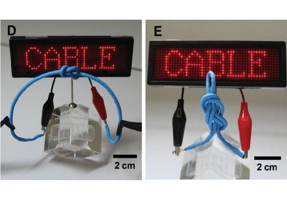 «Кабельный» аккумулятор LG Chem разработан для оснащения электронных устройств, которые можно гнуть или даже завязывать в узел. «Кабельный» аккумулятор, рассчитанный на маленькую мощность, не нагревается даже при длительной работе. Более того, водонепроницаемость батареи делает его идеальным выбором для гаджетов, которые носят вокруг шеи или запястья. Массовое производство батарей кабельного типа начнется в недалеком будущем.