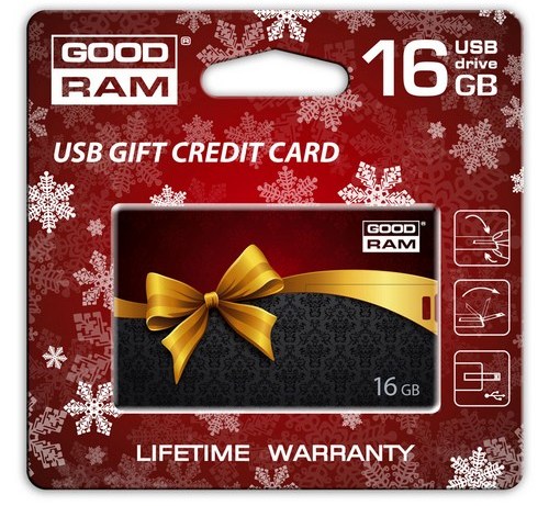 Одна из самых популярных моделей флеш-памяти USB, предлагаемых производителем GOODRAM CUBE, приобрела праздничный облик благодаря небольшой аппликации и этикетке для дарственной надписи на упаковке. Таким образом, этот небольшой носитель понравится людям, которые ценят, прежде всего, классический и простой стиль. GOODRAM USB Gift Card и GOODRAM Cube Gift имеют емкость 4,8,16 ГБ и, как и другие виды флеш-памяти марки GOODRAM, покрыты пожизненной гарантией производителя.