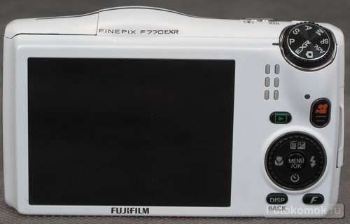 Колесо выбора программ, как и у предшественников, находится на скосе, между верхней и задней гранями камеры. Как показала практика использования моделей FujiFilm F770EXR , FujiFilm F550EXR и FujiFilm F500EXR это решение оказалось удачным: держа камеру в одной руке, режимы съемки легко переключаются большим пальцем.