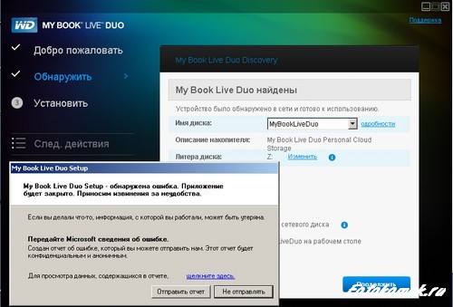 Подключаем Western Digital Book Live DUO к Интернет-центру Zyxel, запускаем программу установки с диска, который шел в комплекте с накопителем.