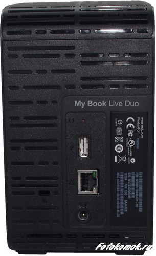 Сам внешний накопитель оставляет очень приятное ощущение, корпус из матового пластика (размер 99x165x157 мм) в виде книжки. Спереди на корпусе присутствует индикатор активности, на задней панели разъем питания, гигабитный разъем для подключения к сети, разъем USB 2.0 и замок Kensington lock. Верхняя панель устройства представляет собой сплошную решетку, через которую отводится тепло от накопителя. К слову сказать, в процессе эксплуатации Western Digital Book Live DUO греется незначительно.