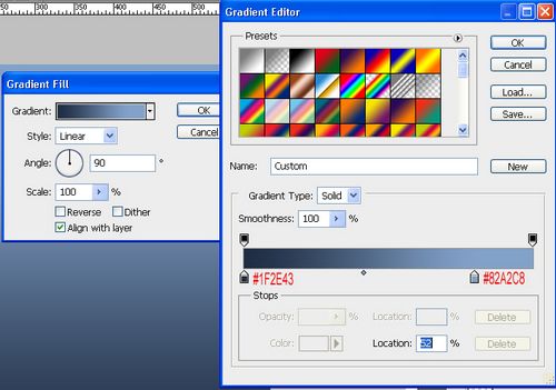 для заливки слоя градиентом. Устанавливаем такие значения: