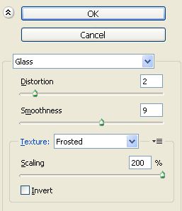 Затем фильтр «Стекло» (Filter=> Distort=> Glass):