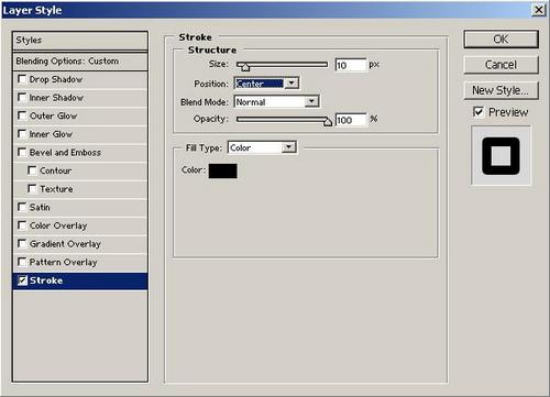 Шаг 4. Следующим шагом выбираем в свойствах слоя fill opacity и делаем его равным 0%. Щелкаем правой кнопкой мыши по слою и выбираем Stroke. Делаем настройки как в табличке.