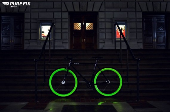 Кроме модели Zulu, которая светится полностью, Pure Fix предлагает модель Kilo, у которой светится только вилка и рама и модель The Hotel, у нее светятся только колеса.