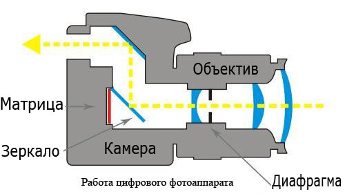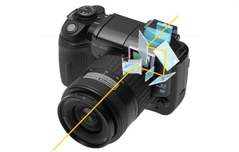 Как известно, принцип работы любого зеркального цифрового фотоаппарата заключается в следующем. Сначала лучи света попадают на линзы объектива, где происходит их преломление. Далее собранные световые лучи проходят через объектив до диафрагмы, с помощью которой регулируется количество поступающего света. Свет попадает на поворотное зеркало фотокамеры, отражается и отправляется через преломляющую призму в видоискатель. В этот момент фотограф, который смотрит в видоискатель цифровой камеры, видит полное отражение того, что происходит перед объективом. Выстроив определенную композицию, фотограф нажимает на спуск.